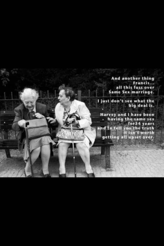 And another thing Francis, all this fuss over Same Sex marriage. I just don't see what the big fuss is !